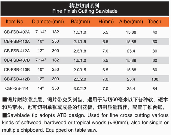 Fine Finish Cutting Sawblade